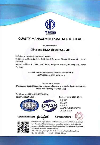 Xinxiang SIMO Blower Co., Ltd. 인증